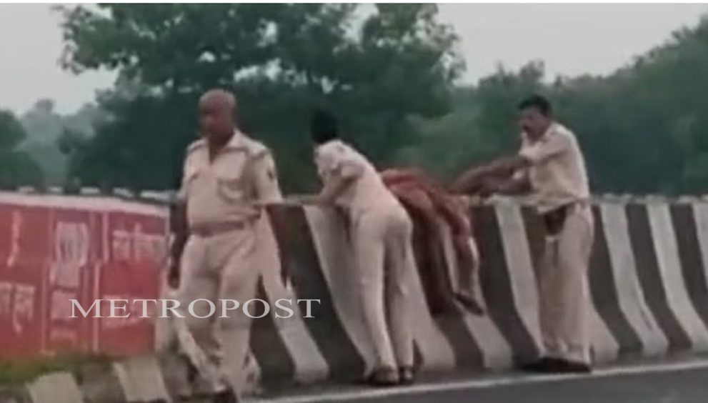 പാട്ന: വാഹനാപകടത്തില്‍ മരിച്ചയാളുടെ മൃതദേഹം ആശുപത്രിയിലെത്തിക്കാതെ പുഴയിലേക്കെറിഞ്ഞ് ബീഹാര്‍ പോലീസ്. മുസഫര്‍നഗറിലെ ഫകുലിയില്‍ ദേശീയ പാത 22-ല്‍ ആയിരുന്നു സംഭവം. അജ്ഞാത വാഹനമിടിച്ച് മരണപ്പെട്ടയാളുടെ മൃതദേഹമാണ് പോലീസ് പുഴയിലേക്കെറിഞ്ഞത്. ഇതിന്റെ വീഡിയോ ദൃശ്യങ്ങള്‍ സോഷ്യല്‍ മീഡിയയില്‍ പ്രചരിക്കുന്നുണ്ട്. സംഭവം വിവാദമായതിന് പിന്നാലെ പോലീസ് മൃതദേഹം കരയ്ക്കെത്തിച്ച് ആശുപത്രിയിലേക്ക് മാറ്റി.