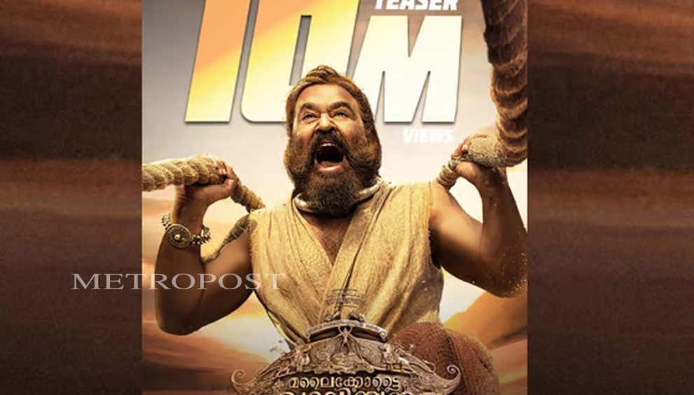 മോഹന്ലാല് നായകനായെത്തുന്ന ‘മലൈക്കോട്ടൈ വാലിബന്റെ’ ടീസര് പ്രേക്ഷകര്ക്ക് നല്കുന്ന പ്രതീക്ഷ വാനോളമാണ്. 24 മണിക്കൂര് കഴിഞ്ഞും തീ പടരും വേഗത്തിലാണ് ടീസറിന് വ്യൂസ് പോകുന്നത്. ഒരു ദിവസം കൊണ്ട് വാലിബന് ടീസര് ഒരു കോടിയിലധികം കാഴ്ച്ചക്കാരെയാണ് ഇതുവരെ സ്വന്തമാക്കിയിരിക്കുന്നത്.