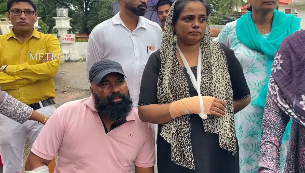 അപകടമുണ്ടാക്കിയ കുഴിയില് എല്ലുപൊട്ടിയ കൈയ്യുമായി പ്രതിഷേധിച്ച് ദമ്പതികള്; കുഴിയില് ചെടി നട്ട് നാട്ടുകാര്