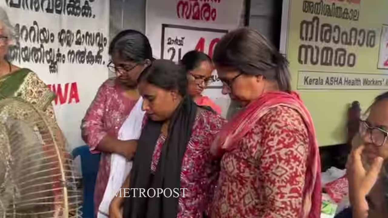 തിരുവനന്തപുരം: ആശാപ്രവര്ത്തകരുടെ രാപ്പകല് സമരം നാല്പ്പത്തിയൊന്നാം ദിവസത്തിലേക്ക് കടക്കുമ്പോള് നിരാഹാരസമരം മൂന്നാം ദിവസവും തുടരുകയാണ്. ഓണറേറിയം വര്ധിപ്പിക്കണമെന്നതടക്കമുള്ള ആവശ്യങ്ങളുന്നയിച്ച് സെക്രട്ടേറിയറ്റിനുമുന്നില് നിരാഹാരം കിടക്കുന്നവരുടെ ആരോഗ്യസ്ഥിതിയില് ആശങ്കയുണ്ട്. കേരള