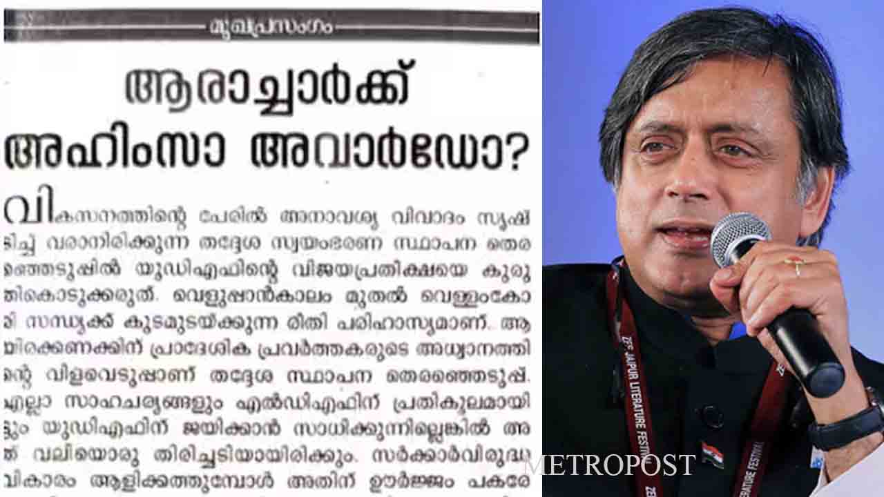 തിരുവനന്തപുരം: മോദി- ട്രംപ് കൂടിക്കാഴ്ചയെയും കേരളത്തിലെ ഇടത് സര്ക്കാറിന്റെ വ്യവസായ നയത്തെയും പ്രകീര്ത്തിച്ച ശശി തരൂരിനെ അതിരൂക്ഷമായി വിമര്ശിച്ച് കോണ്ഗ്രസ് മുഖപത്രം വീക്ഷണം. ‘ആരാച്ചാര്ക്ക് അഹിംസാ അവാര്ഡോ’