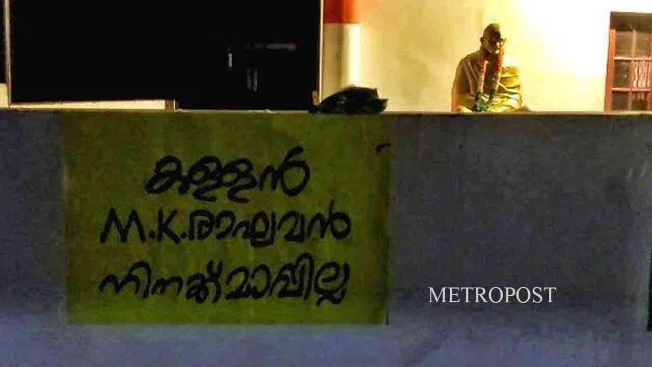 കണ്ണൂര്: എംകെ രാഘവനെതിരെ പയ്യന്നൂരില് പോസ്റ്റര്. മാടായി കോളജിലെ ബന്ധു നിയമനവുമായി ബന്ധപ്പെട്ട വിവാദം പരസ്യ ഏറ്റുമുട്ടലിലേക്ക് എത്തിയതോടെ എം.കെ രാഘവന് എം.പിയും കണ്ണൂര് കോണ്ഗ്രസും തമ്മിലുള്ള