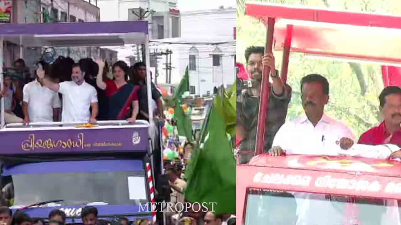വയനാട്/തൃശൂര്: വയനാട് ചേലക്കര മണ്ഡലങ്ങളിലെ ഉപതെരഞ്ഞെടുപ്പ് പരസ്യപ്രചാരണം തീരാന് മണിക്കൂറുകള് മാത്രം അവശേഷിക്കെ വാശിയേറിയ പ്രചാരണമാണ് മുന്നണികള് നടത്തുന്നത്. ഇരു മണ്ഡലങ്ങളും കൊട്ടിക്കലാശത്തിന് ഒരുങ്ങുമ്പോള് റോഡ് ഷോകളും