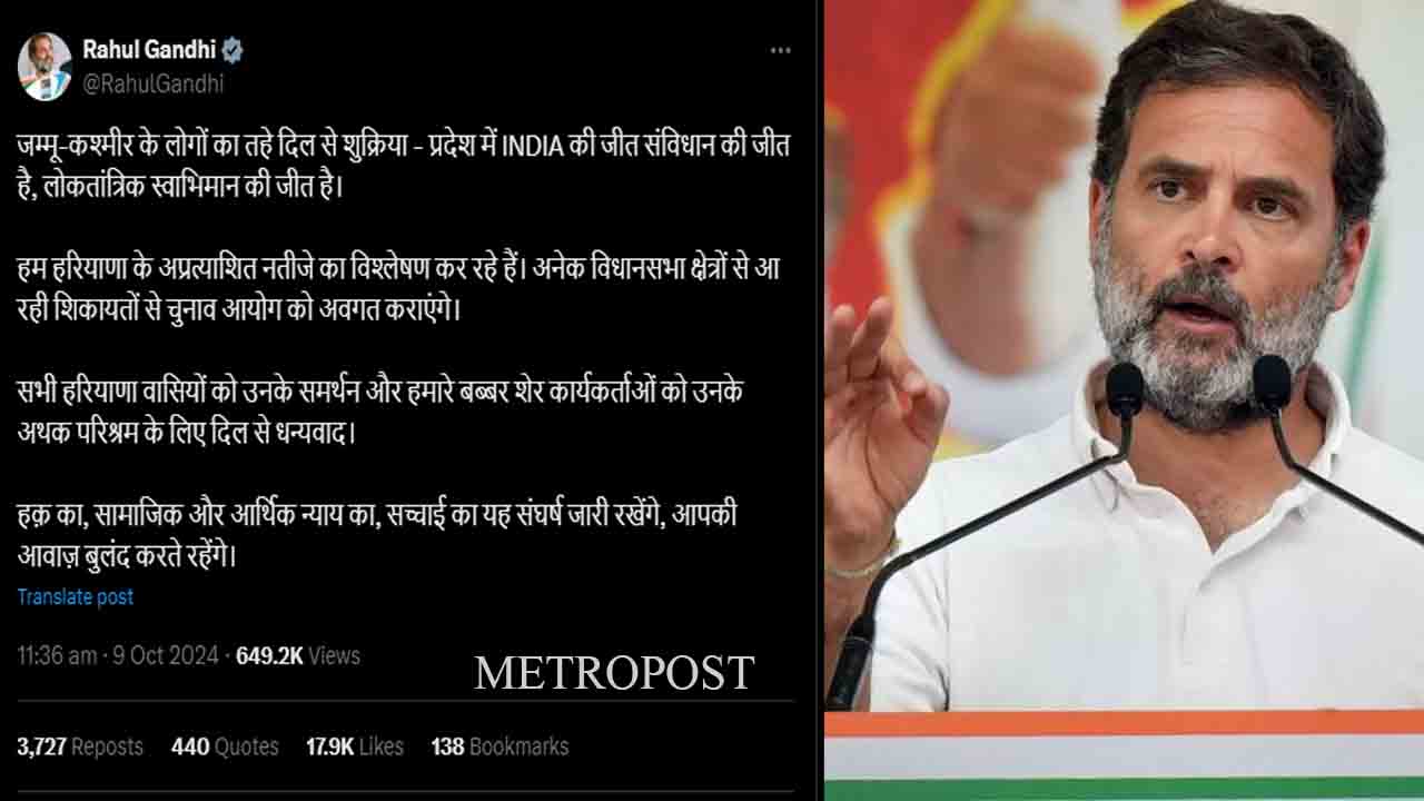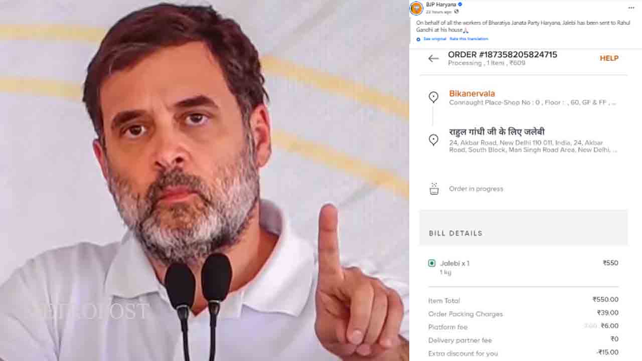 ഡല്ഹി: ഹരിയാനയില് ഹാട്രിക് വിജയം നേടിയതിന് പിന്നാലെ പ്രതിപക്ഷ നേതാവ് രാഹുല് ഗാന്ധിയെ പരിഹസിച്ച് ബിജെപി. ഒരു കിലോ ജിലേബി രാഹുല് ഗാന്ധിയുടെ വസതിയിലേക്ക് ഓര്ഡര് ചെയ്ത്