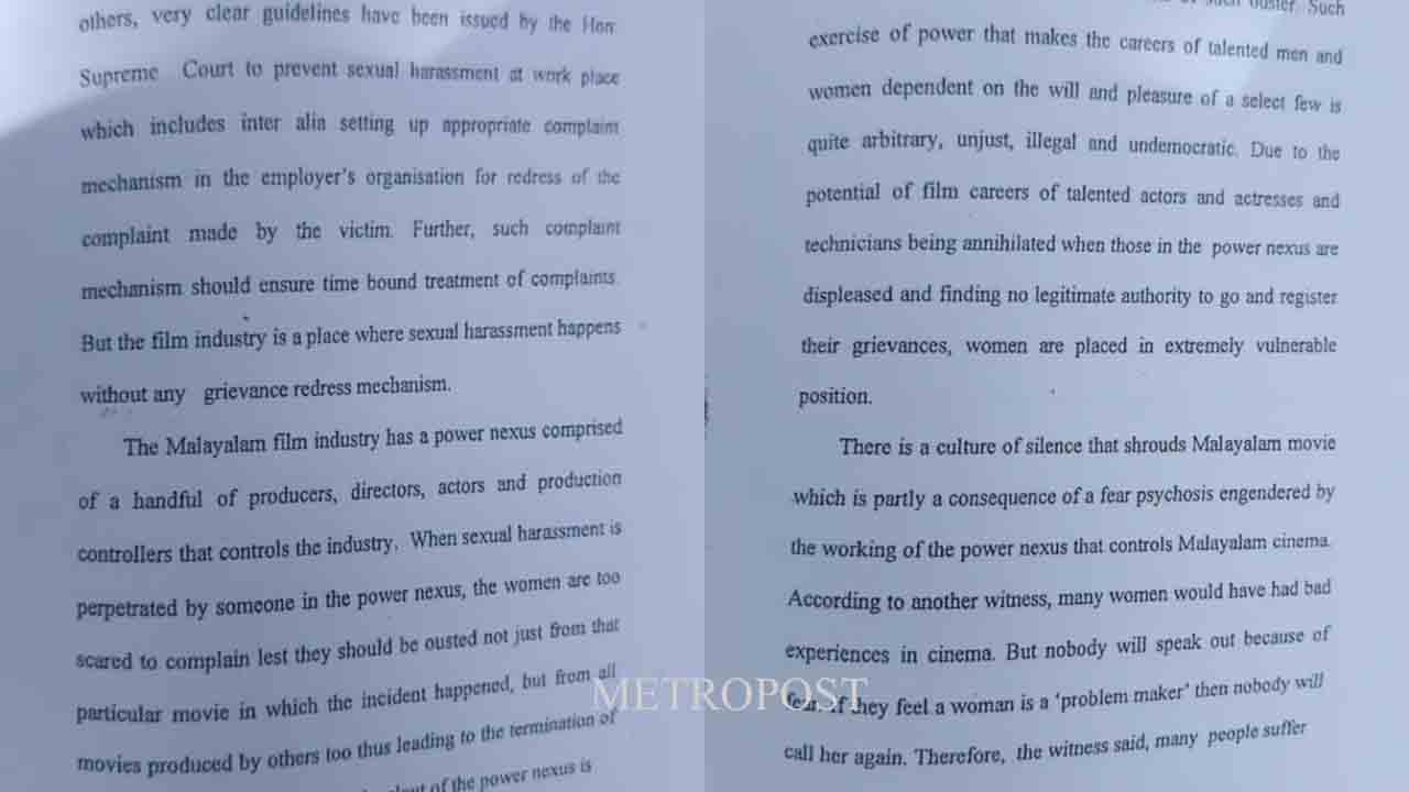 തിരുവനന്തപുരം: സിനിമാ മേഖലയുമായി ബന്ധപ്പെട്ട് പുറത്ത് വന്ന ഹേമ കമ്മിറ്റി റിപ്പോര്ട്ടില് പല ഞെട്ടിക്കുന്ന വിവരങ്ങളും ഉള്പ്പെടുന്നതായി പരാമര്ശം. മലയാശ സിനിമയില് കാര്യങ്ങള് നിയന്ത്രിക്കുന്നത് ഒരു പവര്