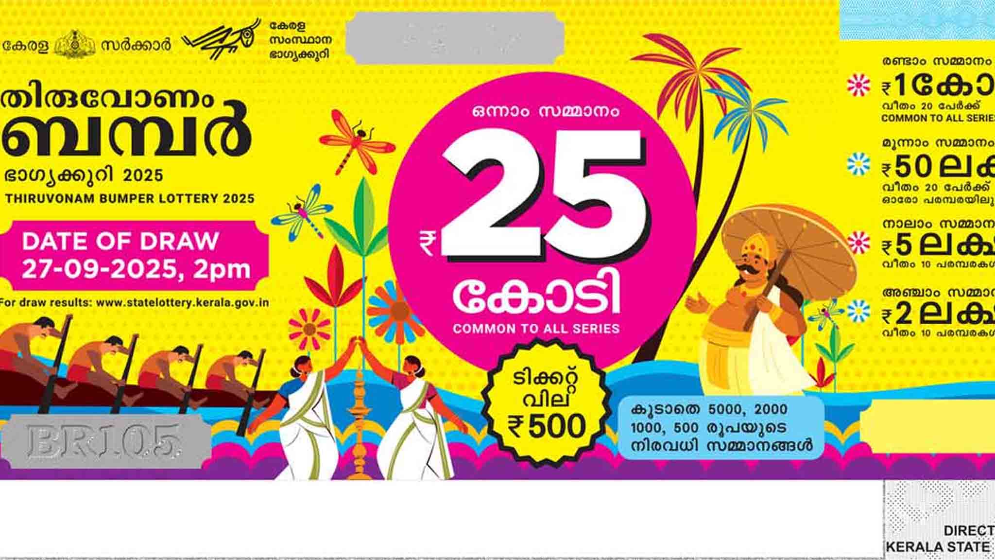 തിരുവനന്തപുരം: 2025ലെ ഓണം ബമ്പർ നറുക്കെടുത്തു. BR 105 എന്ന സീരീയൽ നമ്പറാണ് നറുക്കെടുത്തിരിക്കുന്നത്. 25 കോടി രൂപയുടെ ഒന്നാം സമ്മാനം TH 577825 എന്ന നമ്പറിനാണ്
