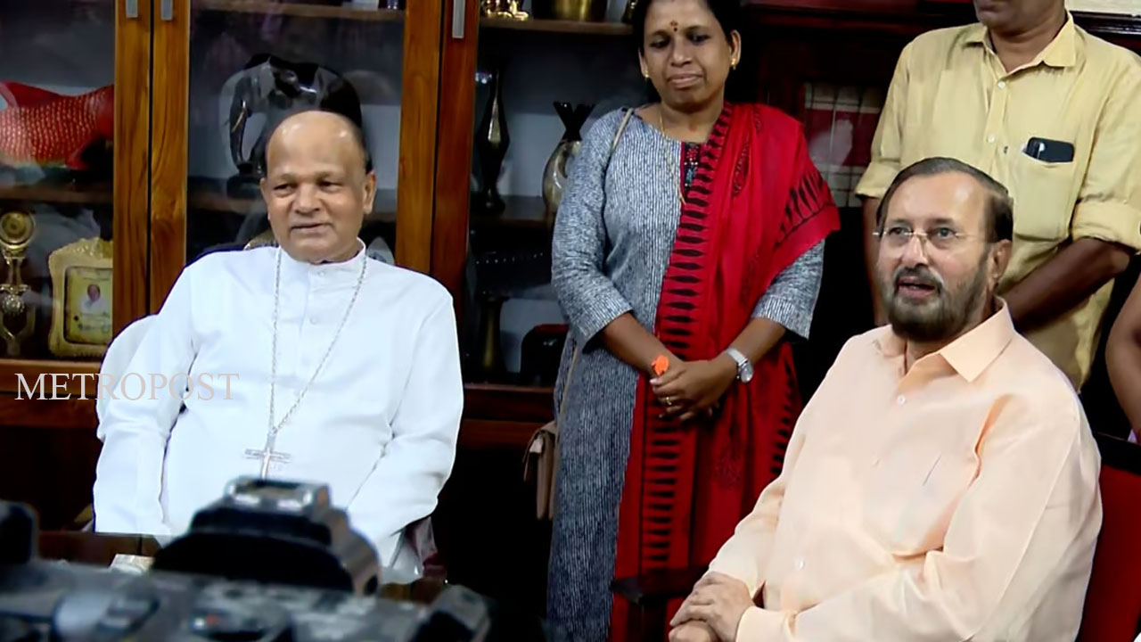 കോഴിക്കോട്: ന്യൂനപക്ഷങ്ങള് അരക്ഷിതത്വത്തിലാണെന്ന സഭാ മേലധ്യക്ഷന്മാരുടെ പ്രതികരണങ്ങള്ക്ക് പിന്നാലെ അനുനയ നീക്കവുമായി ബിജെപി. കോഴിക്കോട് രൂപതാ ബിഷപ്പ് ഡോ.വര്ഗ്ഗീസ് ചക്കാലക്കലുമായി പ്രകാശ് ജാവദേക്കര് കൂടിക്കാഴ്ച്ച നടത്തി. കോഴിക്കോട്