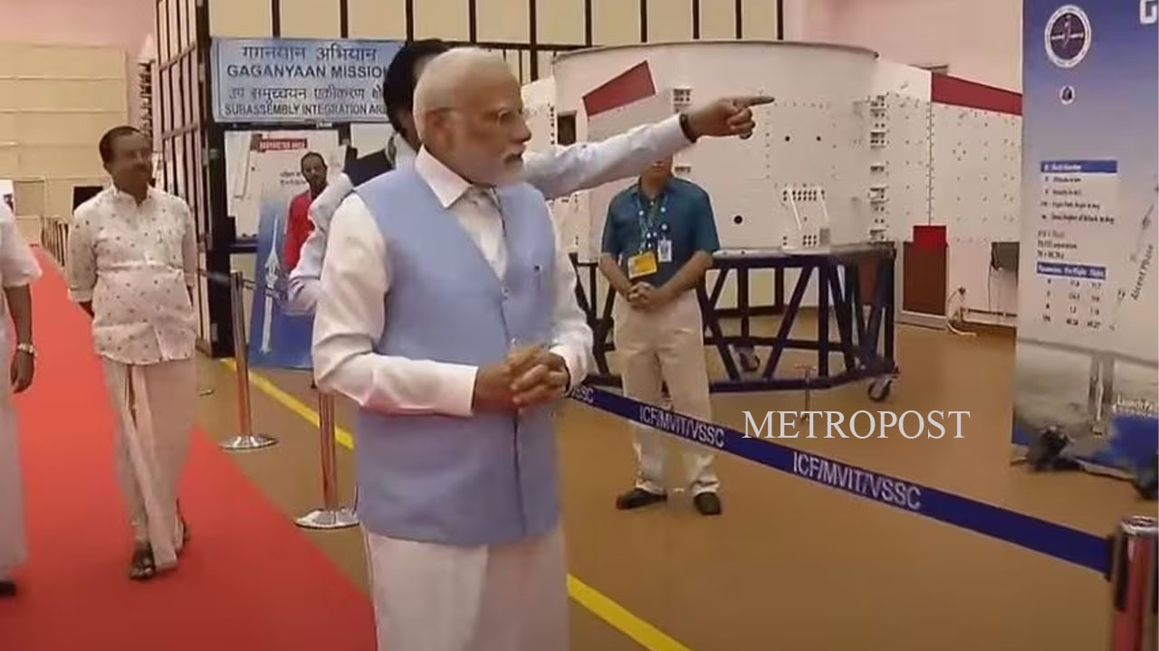 തിരുവനന്തപുരം: പ്രധാനമന്ത്രി നരേന്ദ്രമോദി തിരുവനന്തപുരം വിക്രം സാരാഭായ് സ്പേസ് സെന്ററിലെത്തി. രാജ്യത്തിന്റെ അഭിമാന ബഹിരാകാശ പദ്ധതിയായ ഗഗന്യാന്റെ തയ്യാറെടുപ്പുകളുടെ വിശകലനത്തിനും ശാസ്ത്രജ്ഞരെ അഭിസംബോധന ചെയ്യാനുമായാണ് പ്രധാനമന്ത്രി സ്പേസ്