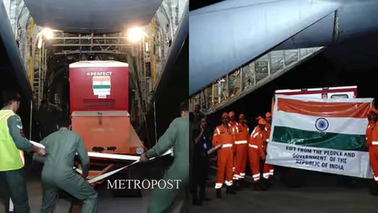 ഡല്ഹി: ഭൂചലനമുണ്ടായ മ്യാന്മറിലേക്ക് സഹായഹസ്തവുമായി ഇന്ത്യ. ഏകദേശം 15 ടണ് ദുരിതാശ്വാസ വസ്തുക്കളുമായി മ്യാന്മറിലേക്ക് സൈനിക വിമാനം പുറപ്പെട്ടു. ഹിന്ഡണ് വ്യോമസേനാ സ്റ്റേഷനില് നിന്ന് ഇന്ത്യന് വ്യോമസേനയുടെ