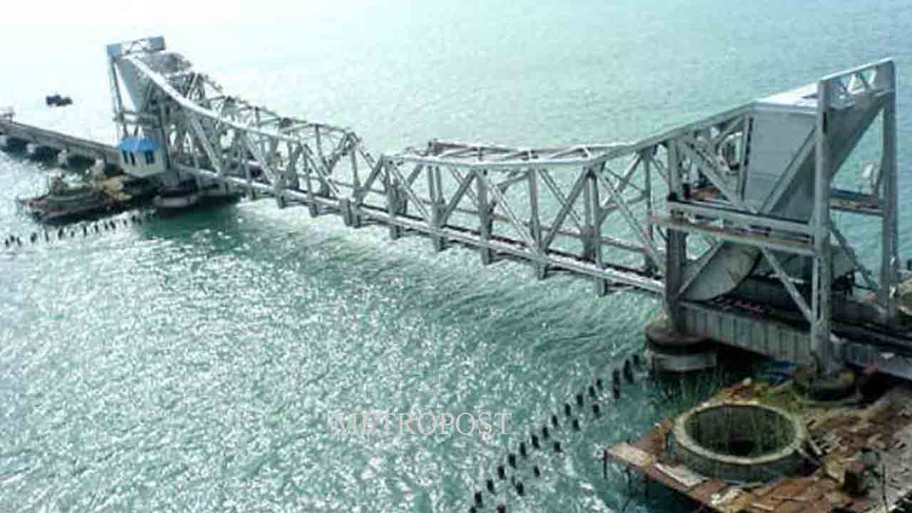രാമേശ്വരം: രാമേശ്വരത്തിന് സമീപം റെയില്വേയുടെ പുതിയ പാമ്പന് പാലത്തിന്റെ നിര്മാണം അവസാനഘട്ടത്തില്. ശനിയാഴ്ച പുലര്ച്ച പാലത്തിന്റെ നടുവില് ഗര്ഡര് ബ്രിഡ്ജ് വിജയകരമായി സ്ഥാപിച്ചതില് റെയില്വേ എന്ജിനീയര്മാര് ആകാശത്ത്