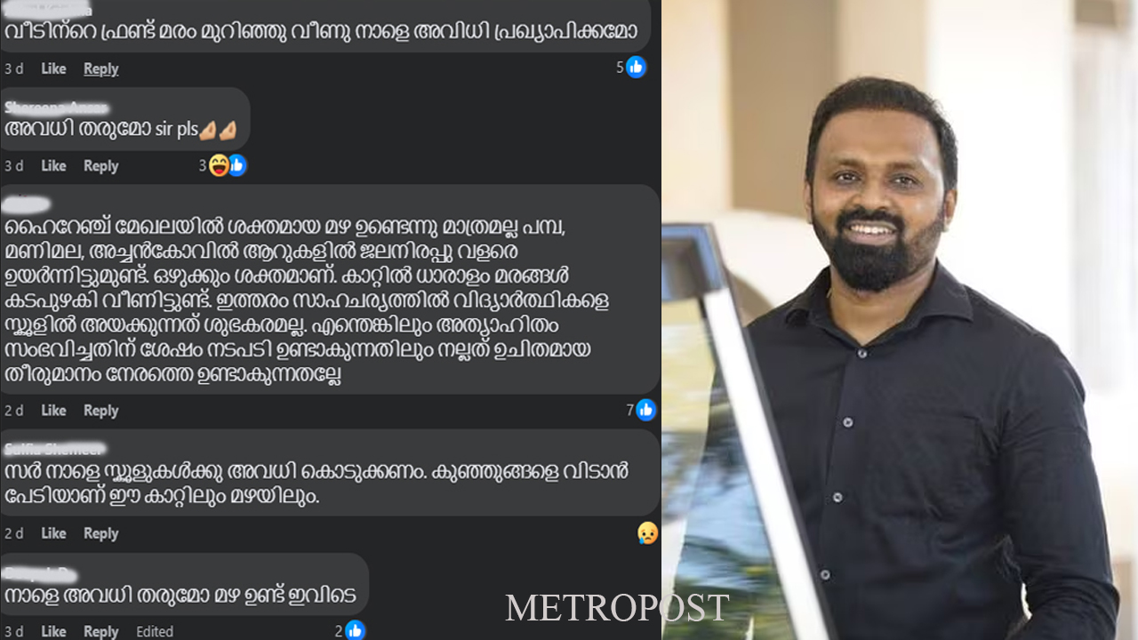 മഴ കനക്കുമ്പോള് അവധി ചോദിച്ച് കളക്ടര്മാരുടെ ഫെയ്സ്ബുക്ക് പേജുകള് കമന്റുകള് കൊണ്ട് നിറയാറുണ്ട്. ഇവര്ക്ക് രസകരമായ മറുപടി നല്കി ചില കളക്ടര്മാരും വാര്ത്തയിലിടം പിടിക്കാറുണ്ട്. എന്നാല് ഇത്തവണ