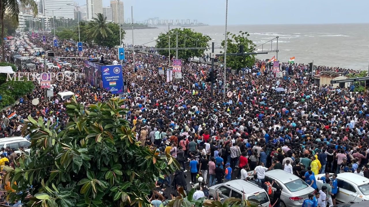മുംബൈ: ട്വന്റി 20 ലോകചാമ്പ്യന്മാരായ ഇന്ത്യന് ടീമിന്റെ മെഗാ റോഡ്ഷോയ്ക്ക് മുംബൈ മറൈന് ഡ്രൈവില് തുടക്കമായി. പ്രിയതാരങ്ങള്ക്കൊപ്പം വിജയ ആഘോഷത്തിന് കോടിക്കണക്കിന് ആരാധകരാണ് എത്തിച്ചേര്ന്നത്. മുംബൈയില് പെയ്യുന്ന