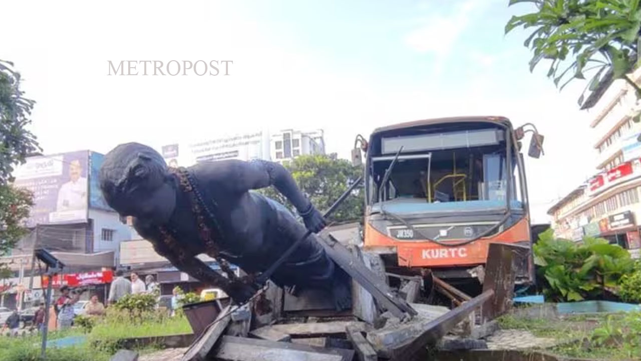 തൃശ്ശൂര്: ശക്തന്നഗറിലെ ശക്തന് തമ്പുരാന് പ്രതിമ കെ.എസ്. ആര്.ടി.സി വോള്വോ ബസ് ഇടിച്ച് മറിഞ്ഞ് വീണു. ഞായറാഴ്ച പുലര്ച്ചെയാണ് സംഭവം. അപകടത്തില് മൂന്ന് യാത്രക്കാര്ക്ക് നിസ്സാര പരിക്കേറ്റു.